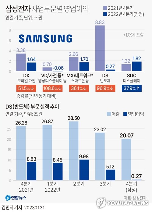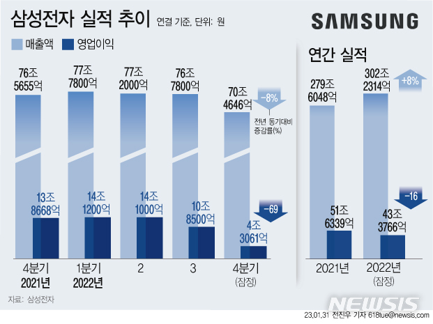 [1] 전자부품 전문 미디어 디일렉 - 삼성전자, 4분기 잠정 영업이익 6조5천억원…시장 기대치 하회 (https://www.thelec.kr/news/articleView.html?idxno=32176)