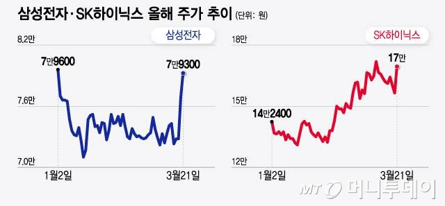 주식 시장에서도 삼성전자와 SK Hynix의 주가가 주목받고 있어요.