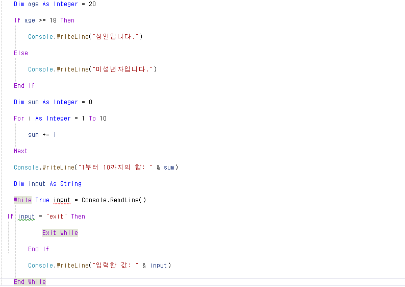 Console.WriteLine("1부터 10까지의 합: " & sum)