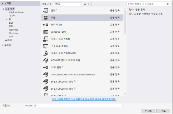 두번째로 프로젝트메뉴의 모듈추가를 눌러 모듈을 추가하신후에