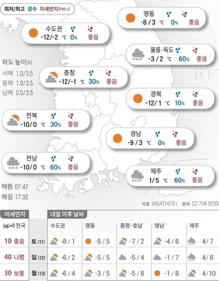 [1] 조선일보 - [오늘의 날씨] 2025년 1월 10일 (https://www.chosun.com/national/national_general/2025/01/10/33INMUGIOFDM7ODS63B7NTQF3E/)
