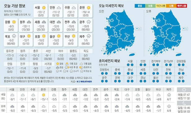 에서 확인할 수 있듯이, 오늘의 날씨는 지역별로 다소 차이가 있지만, 전반적으로 춥고 흐린 날씨가 지속될 것 같아요.