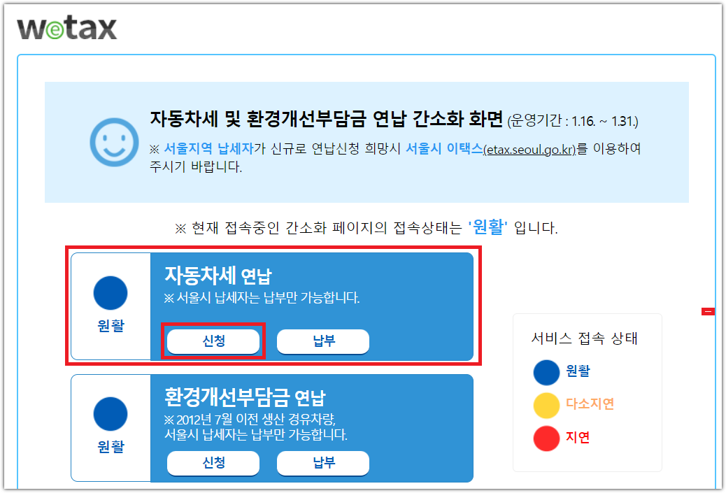 [1] Wetax - 자동차세 연납 신청 (https://wetax.go.kr/main/?cmd=LPEPAC0R0)