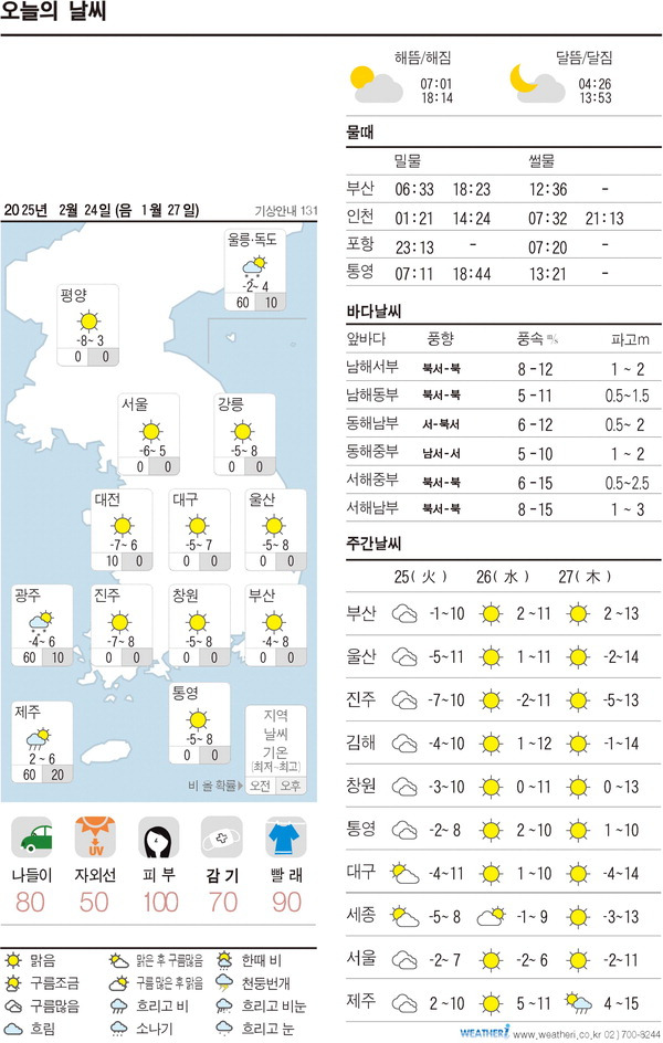 [2] 국민일보 - 오늘의 날씨 - 오전 (2025년 02월 24일) (https://www.kmib.co.kr/article/view.asp?arcid=0027796678)
