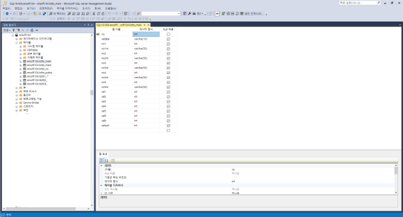 여기에 하나하나 필드명들을 입력하고 데이타 타입을 선택합니다.