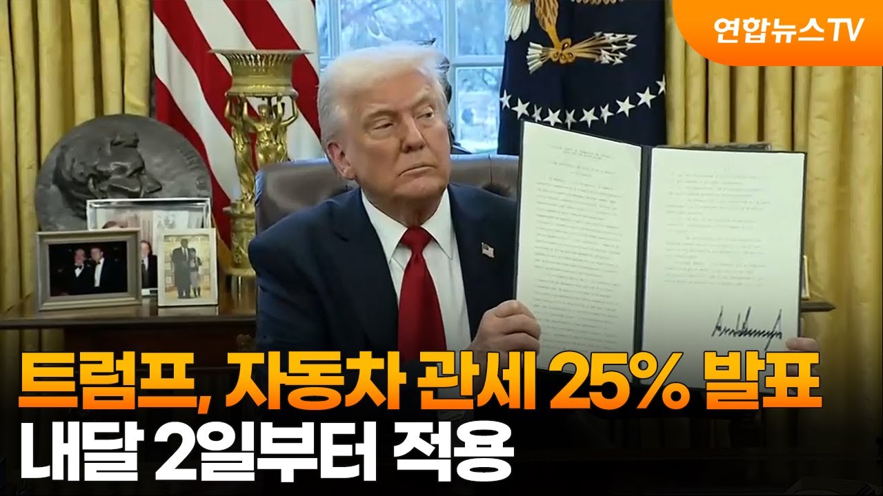 [4] YouTube · 연합뉴스TV - [속보] 트럼프, 외국산 자동차에 25% 관세 공식 발표 / 연합 ... (https://www.youtube.com/watch?v=HAu3JHXHIV0)