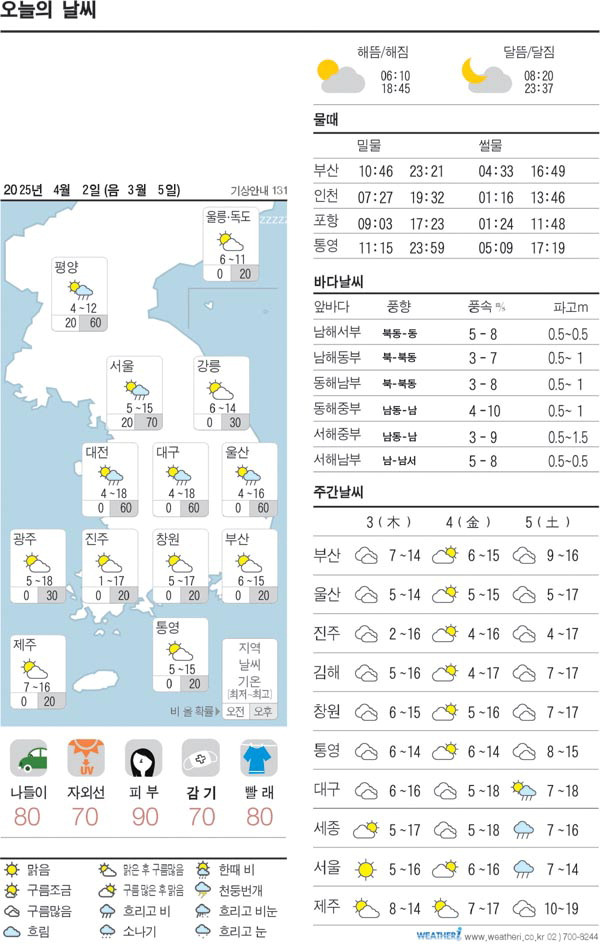 | 2025년 4월 3일 오늘의날씨, 서울날씨, 부산날씨, 제주날씨, 전국날씨 (1) | 2025.04.03 |