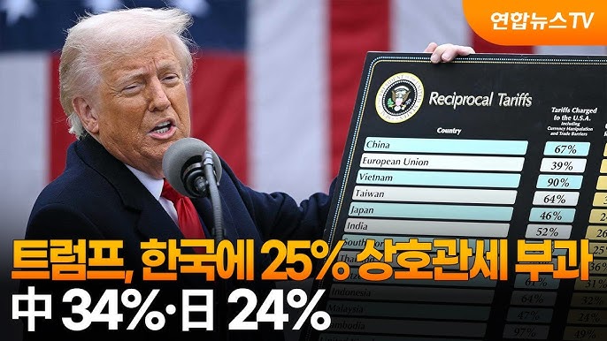 [1] 한겨레 - [속보] 트럼프, 한국에 상호관세 25% 부과…중 34%, 일 24% (https://www.hani.co.kr/arti/international/america/1190340.html)