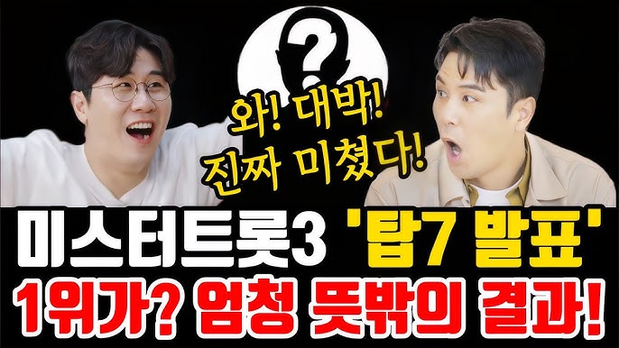 [2] YouTube · 핫토픽Tv - 미스터트롯3 "탑7 발표!" 1위가? 엄청 뜻밖의 결과!!! 3억 축하 ... (https://www.youtube.com/watch?v=MhtvHfgk3rQ)