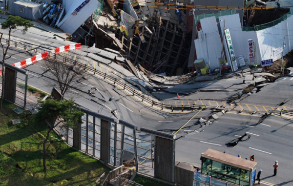 붕괴된 도로의 모습으로, 사고의 심각성을 잘 보여주고 있어요.