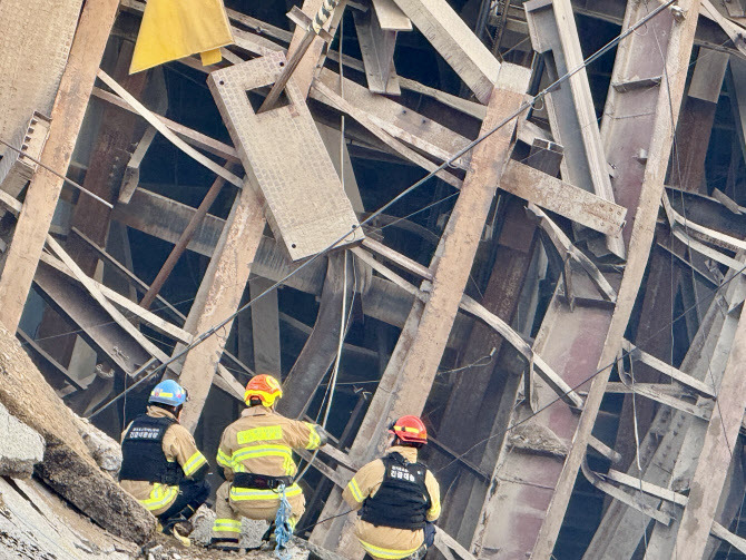 구조 작업을 진행하는 소방대원들의 모습으로, 이들이 보여주는 헌신과 용기에 감사드립니다.