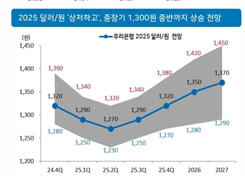 이 그래프는 2024년부터 2027년까지의 환율 변동을 보여주고 있는데, 1,390원에서 1,230원 사이의 변동이 예상되고 있어요. 이러한 예측은 경제 성장률, 금리 변화, 그리고 국제 정세에 따라 달라질 수 있답니다.