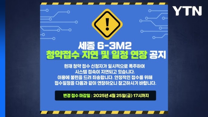[3] YouTube · YTN - '2억 차익' 세종 무순위 청약에 LH 사이트 마비..."접수 연장" / YTN (https://www.youtube.com/watch?v=kv-qXYzhgCI)