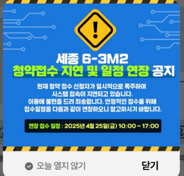 [1] 한겨레 - '2억 차익' 세종 무순위 청약에 LH 사이트 마비…접수 연장 (https://www.hani.co.kr/arti/economy/property/1194164.html)
