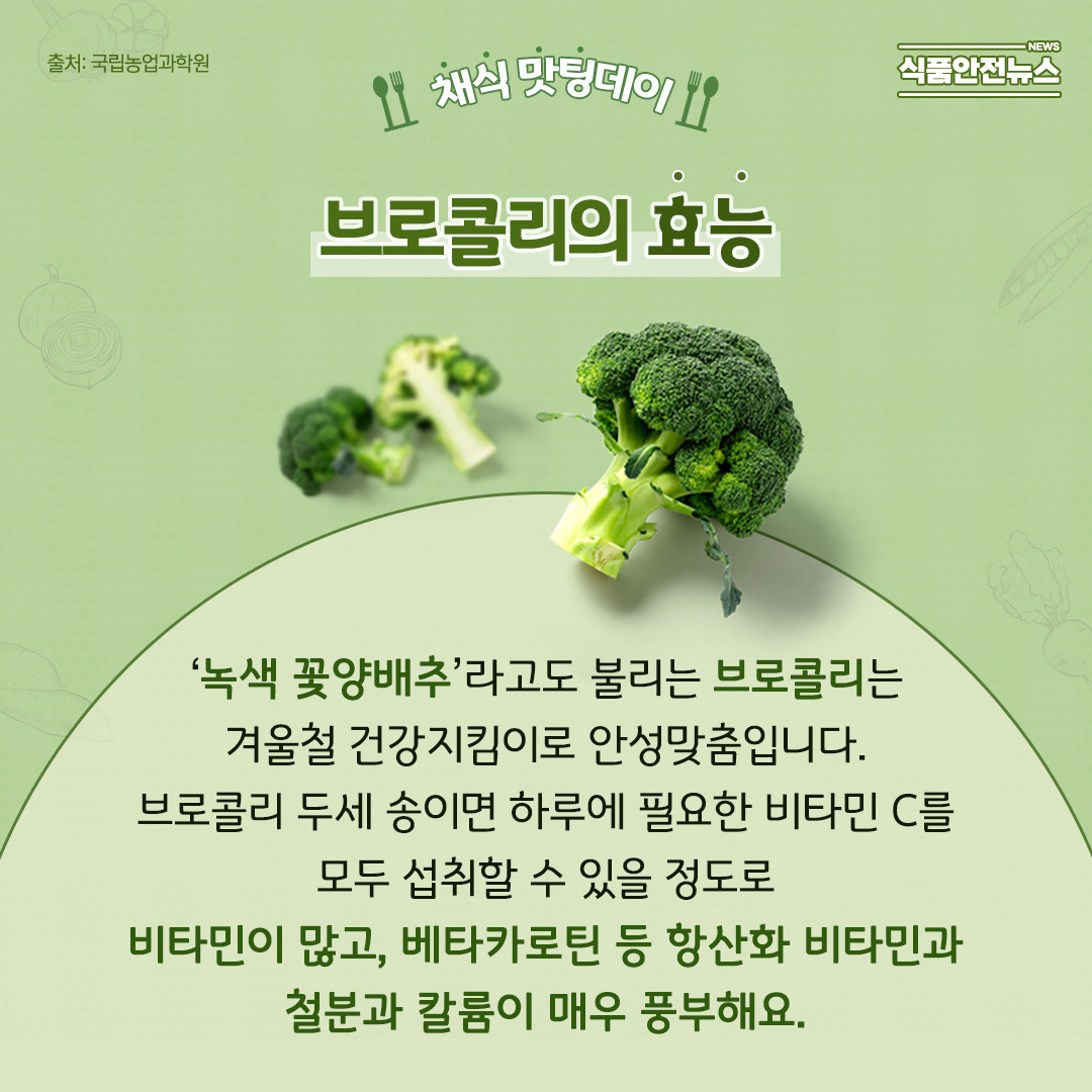 | 브로콜리 | 항암·면역력 | 데친 브로콜리 |