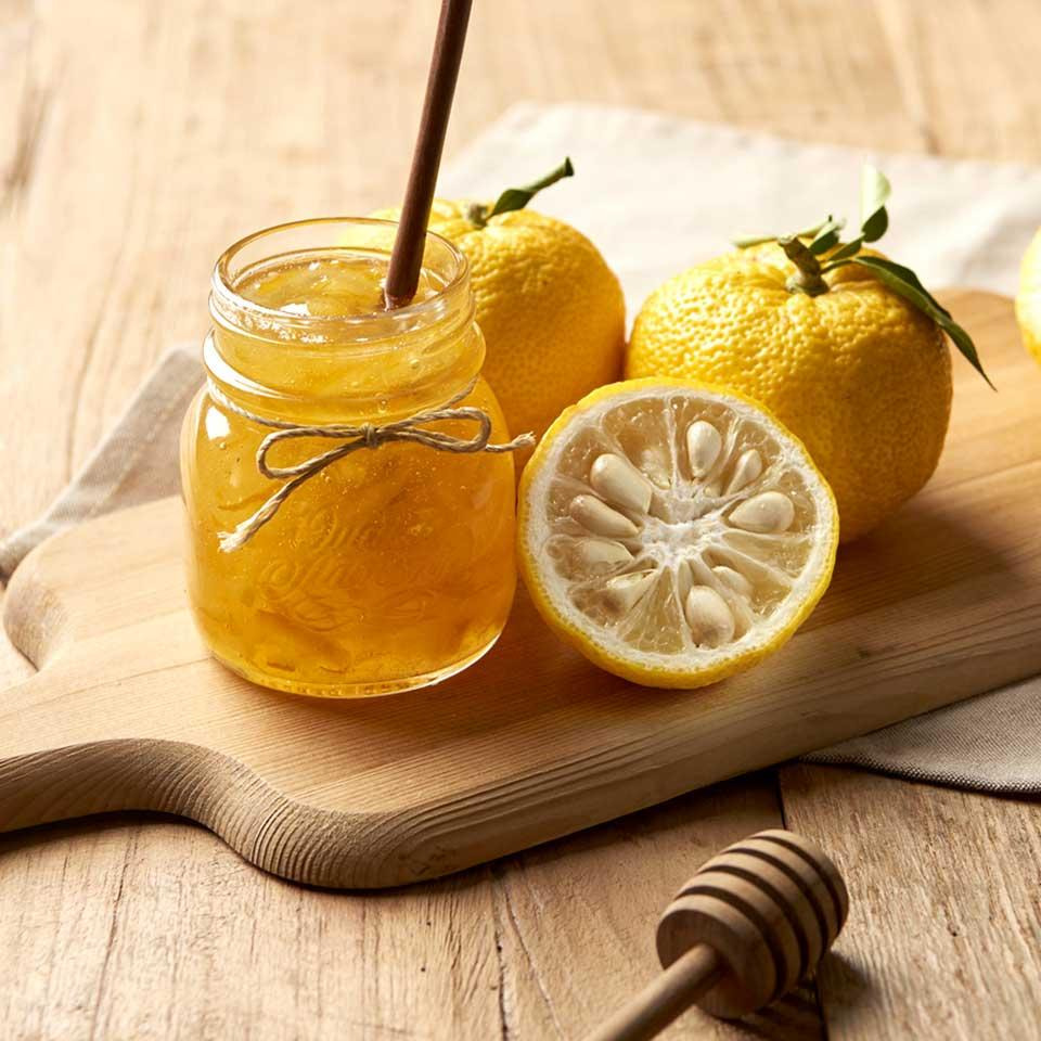 유자 특유의 향은 긴장을 완화시키고, 꿀과 함께 섞이면 항균 효과가 올라가 기침과 목통증에 큰 도움을 줍니다.