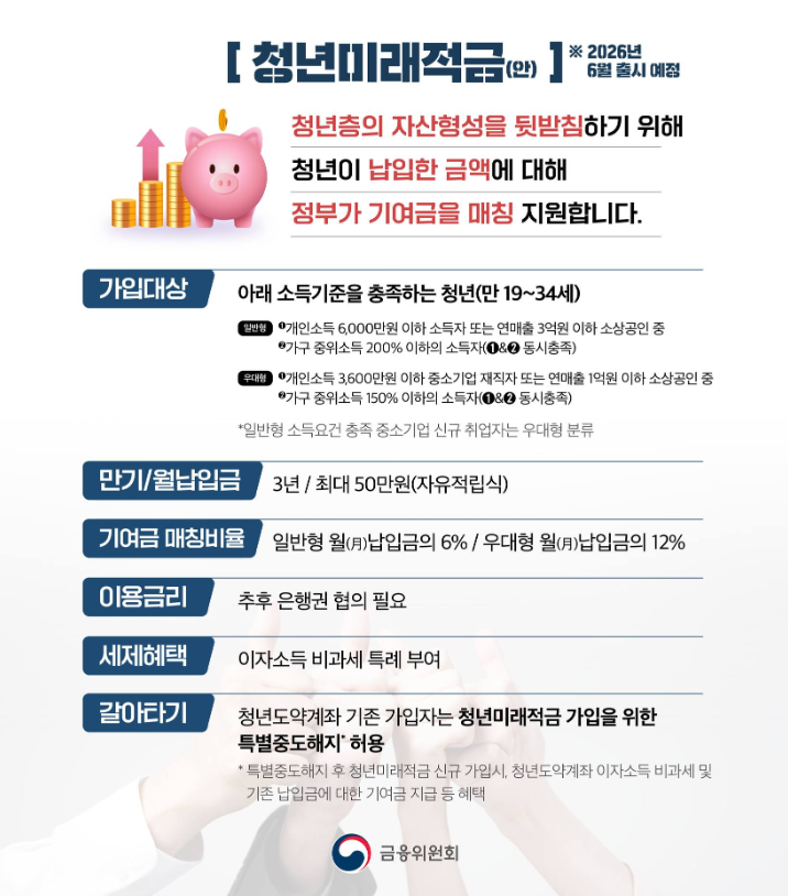 2026년 6월, 새로운 청년 자산 형성 지원 상품인 청년미래적금이 출시 예정이에요.