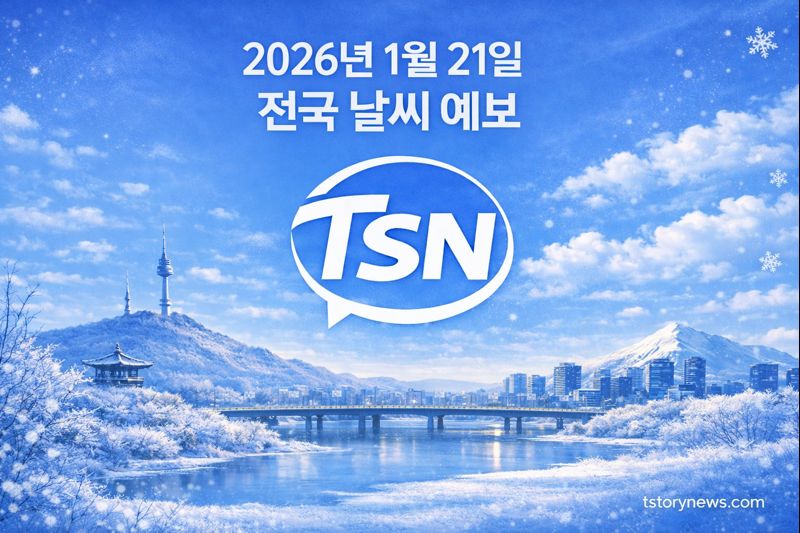 2026년 1월 21일(수요일)은 북서쪽에서 내려오는 찬 공기의 영향이 계속되며