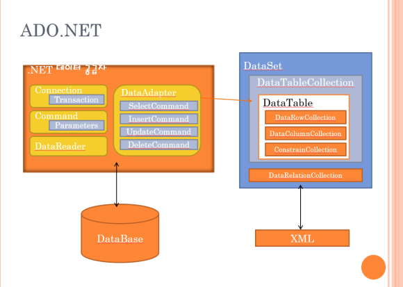 DataSet은 테이블,컬럼,관계,제약조건등을 모두 가질 수 있는 메모리상의 일종의 가상데이터베이스